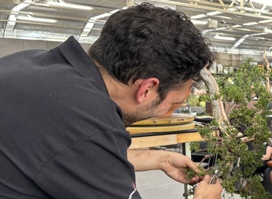 Demonstratie you can watch relaxed while a bonsai master inspires you with advanced techniques and insights into the art of bonsai. By means of live shaping a tree within a few hours.